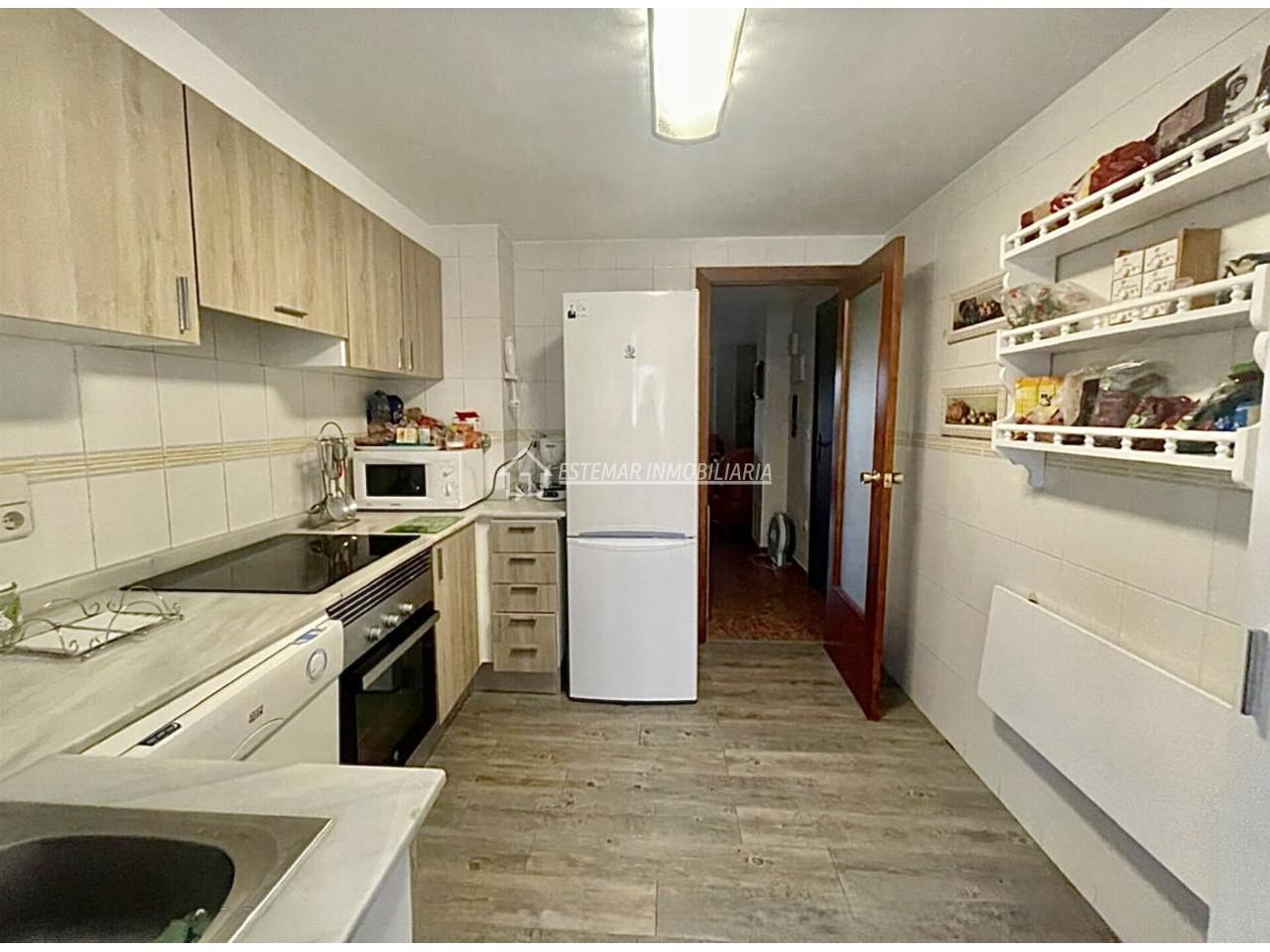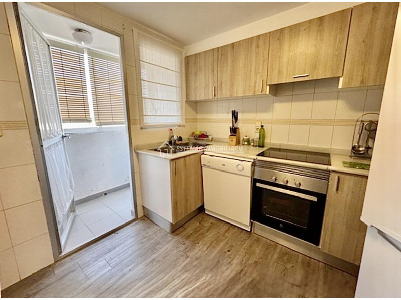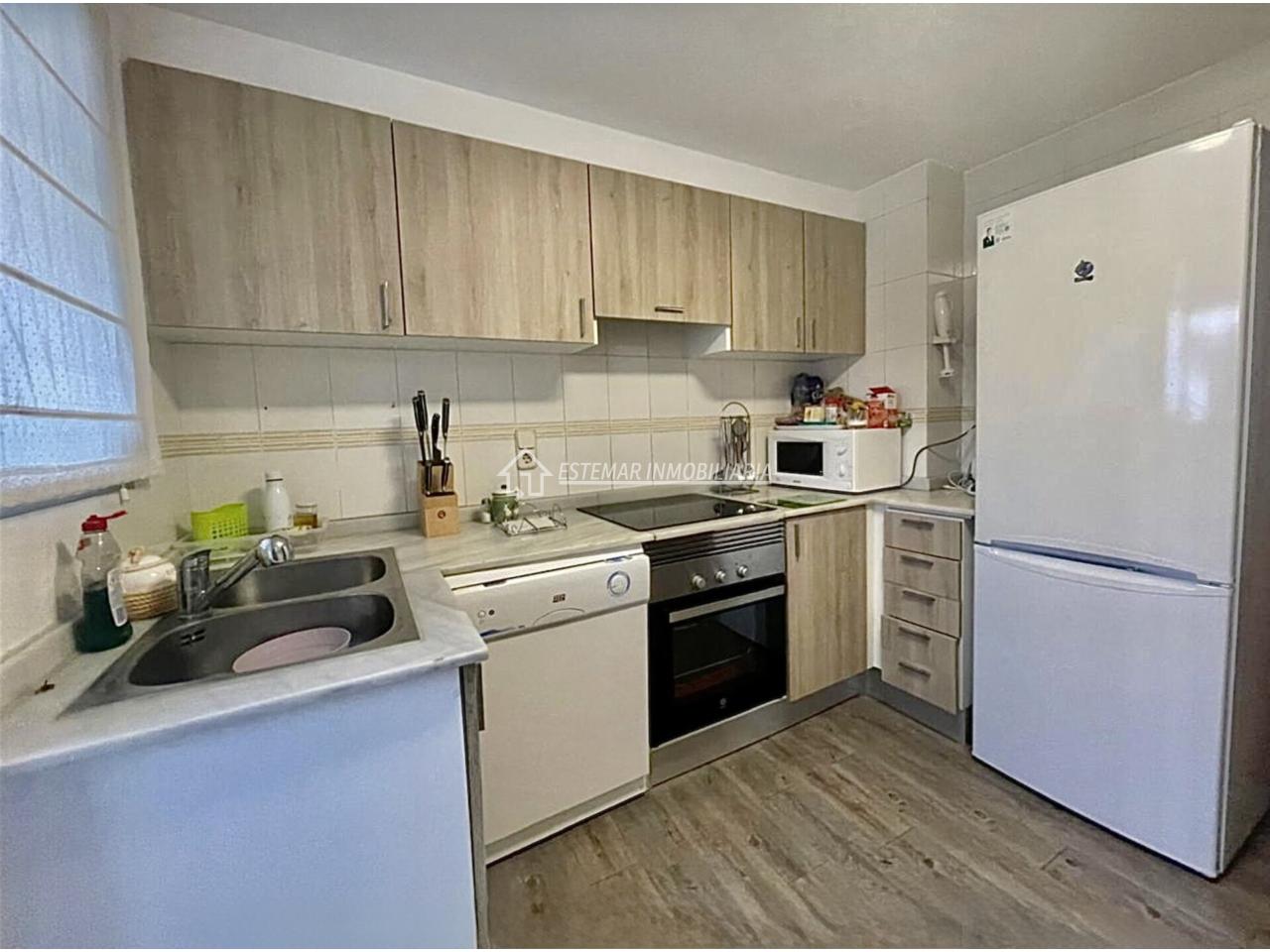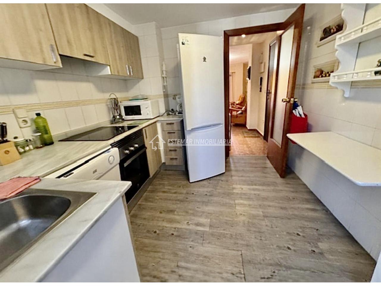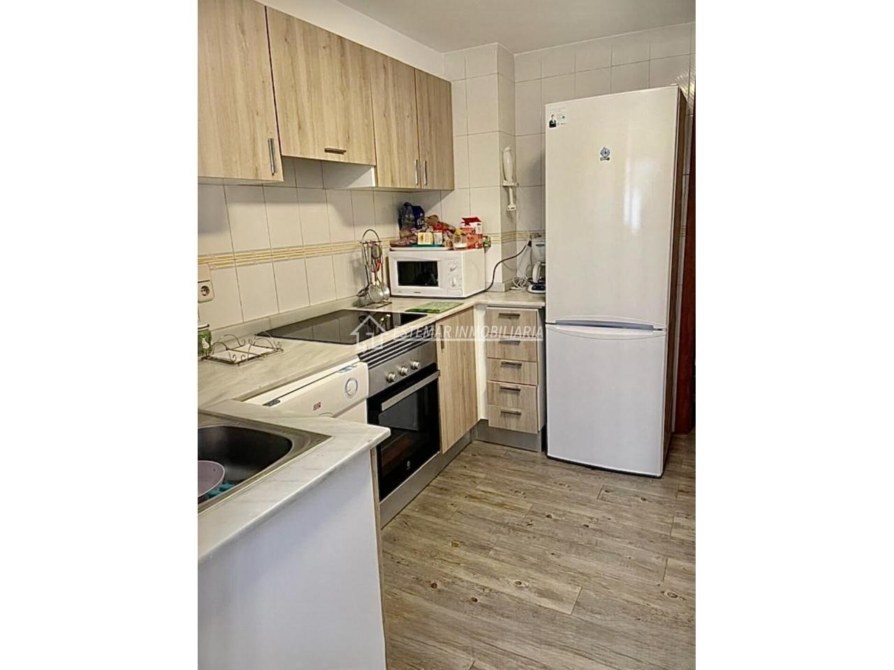 El inmueble cuenta con dos dormitorios (uno doble y uno individual), ambos con armarios empotrados, y dos baños completos. El salón-comedor es amplio y luminoso, con acceso directo al balcón, perfecto para relajarse o disfrutar de las vistas. La cocina, reformada y totalmente equipada, mantiene un estilo práctico y funcional, comunicándose cómodamente con el resto de la vivienda.