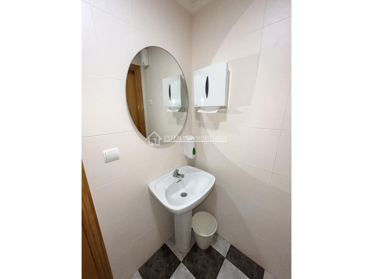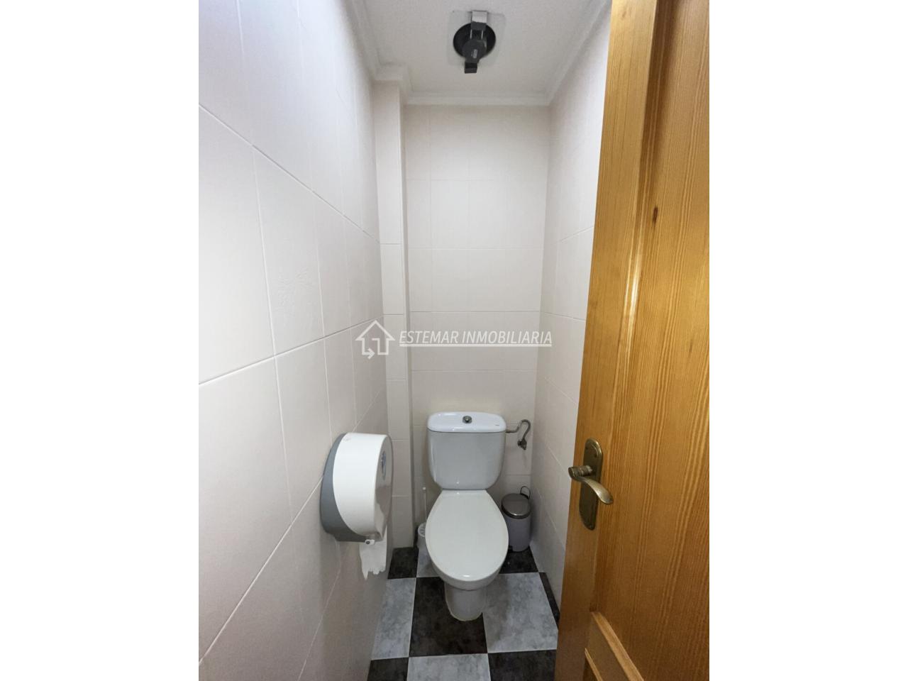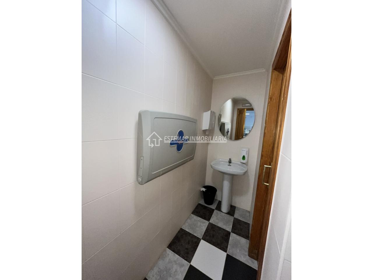 El local cuenta con dos cuartos de aseo muy bien distribuidos: el de mujeres con lavabo y dos cabinas independientes, y el de hombres con lavabo, cabina individual, urinario y una práctica zona de cambio para bebés.