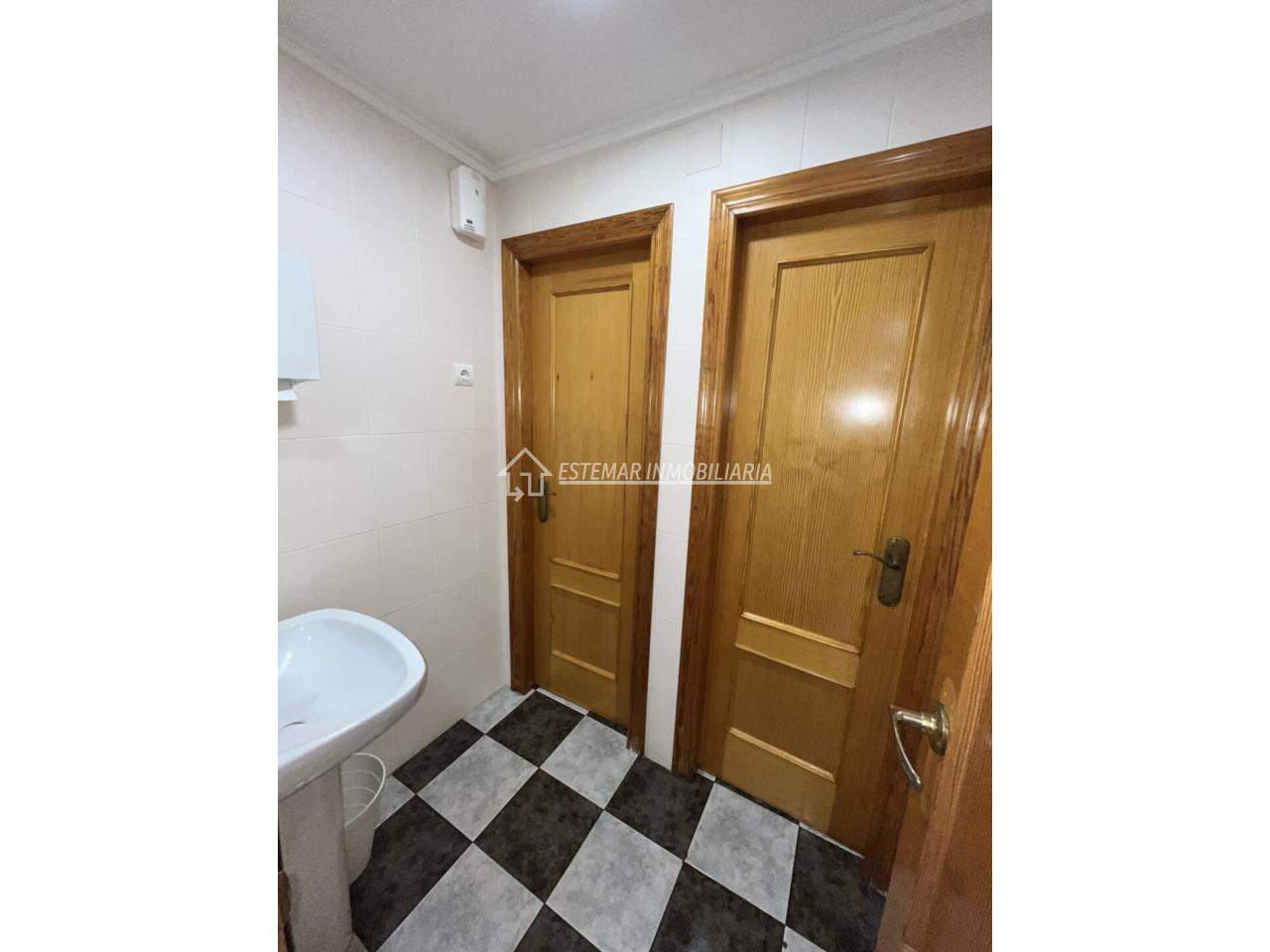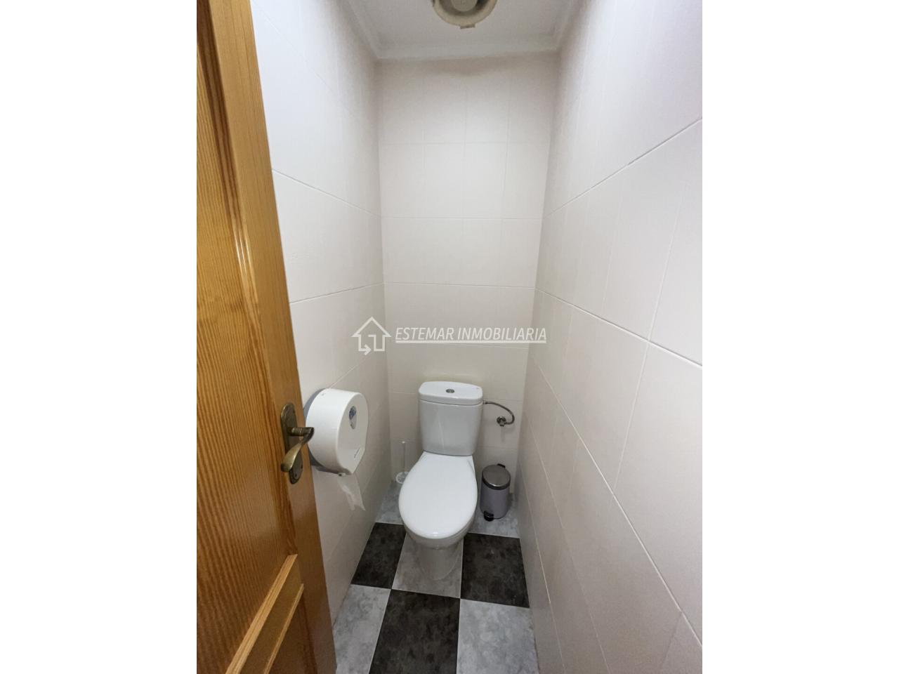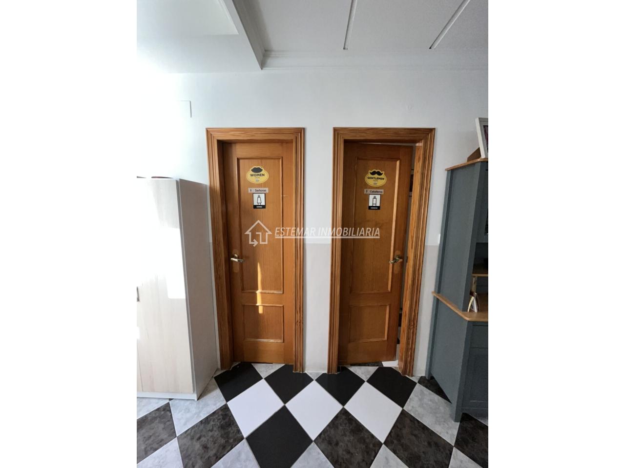 El local cuenta con dos cuartos de aseo muy bien distribuidos: el de mujeres con lavabo y dos cabinas independientes, y el de hombres con lavabo, cabina individual, urinario y una práctica zona de cambio para bebés.