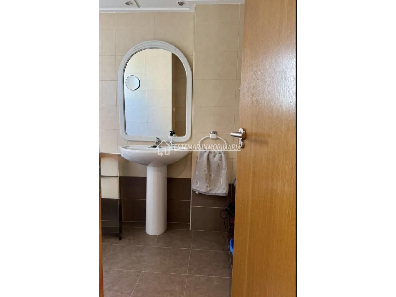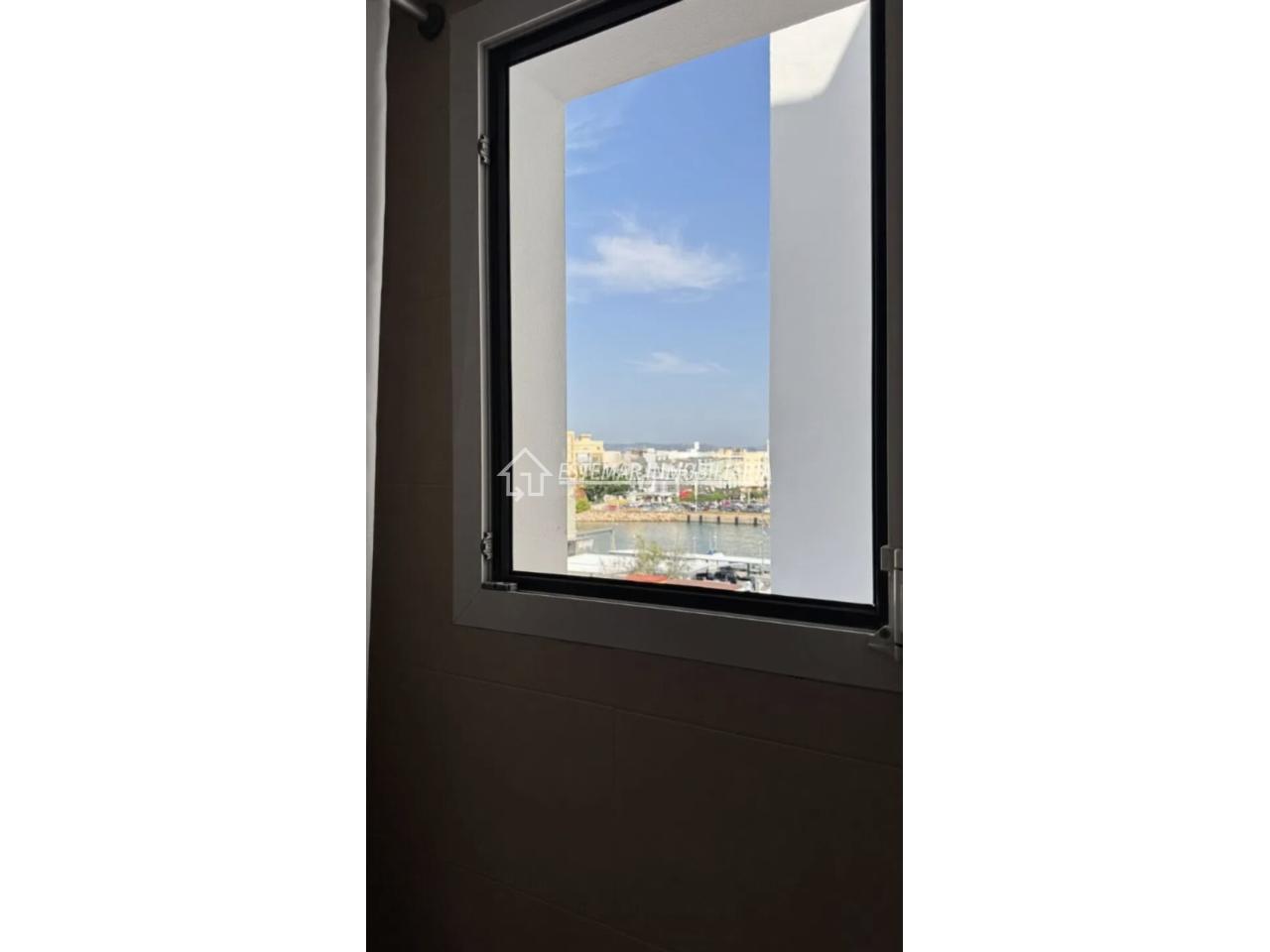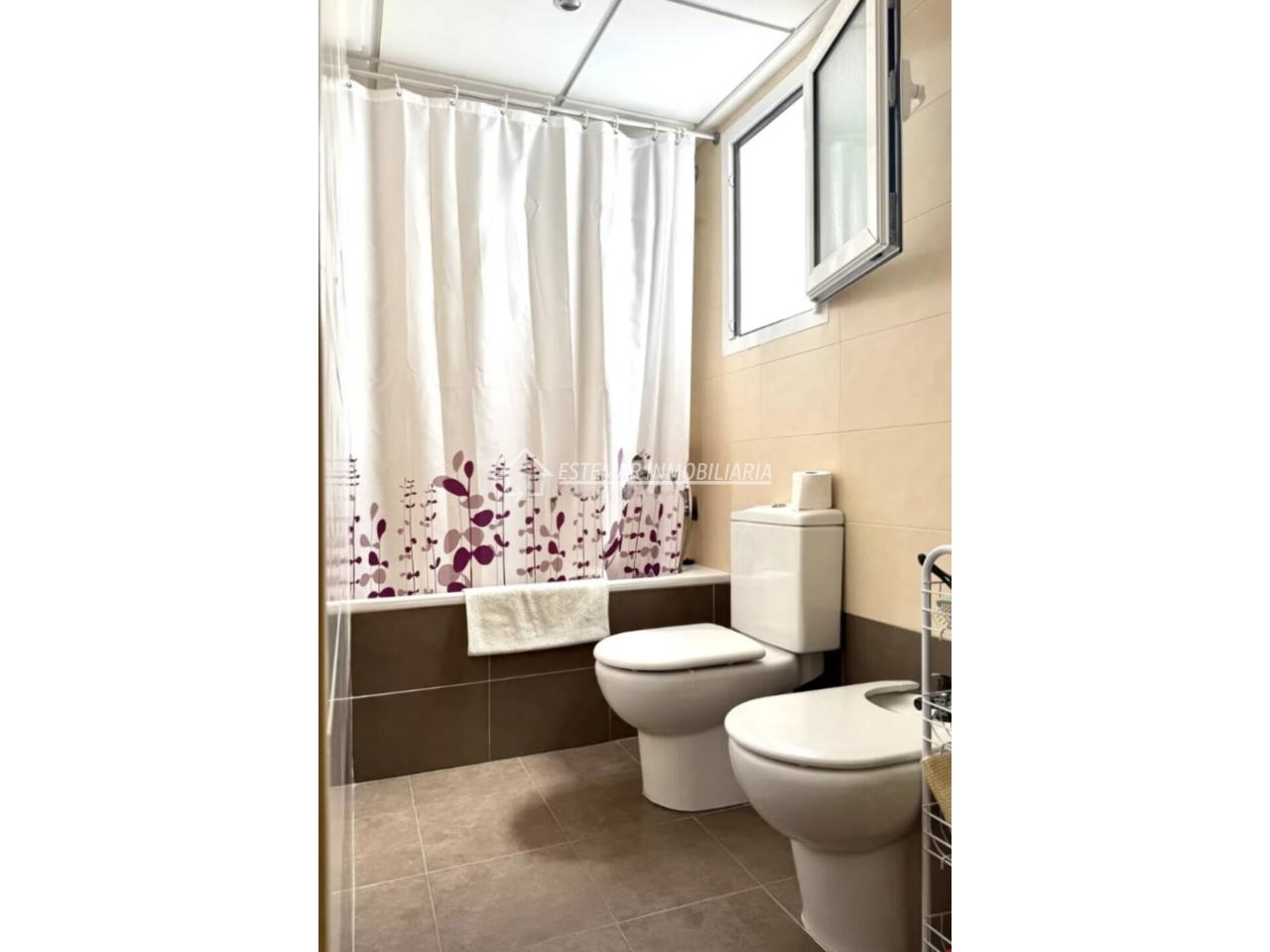 El baño completo se encuentra en excelente estado y cuenta con una ventana exterior con vistas al puerto de Gandia, un detalle especial que aporta luz natural, ventilación y una sensación de amplitud.
