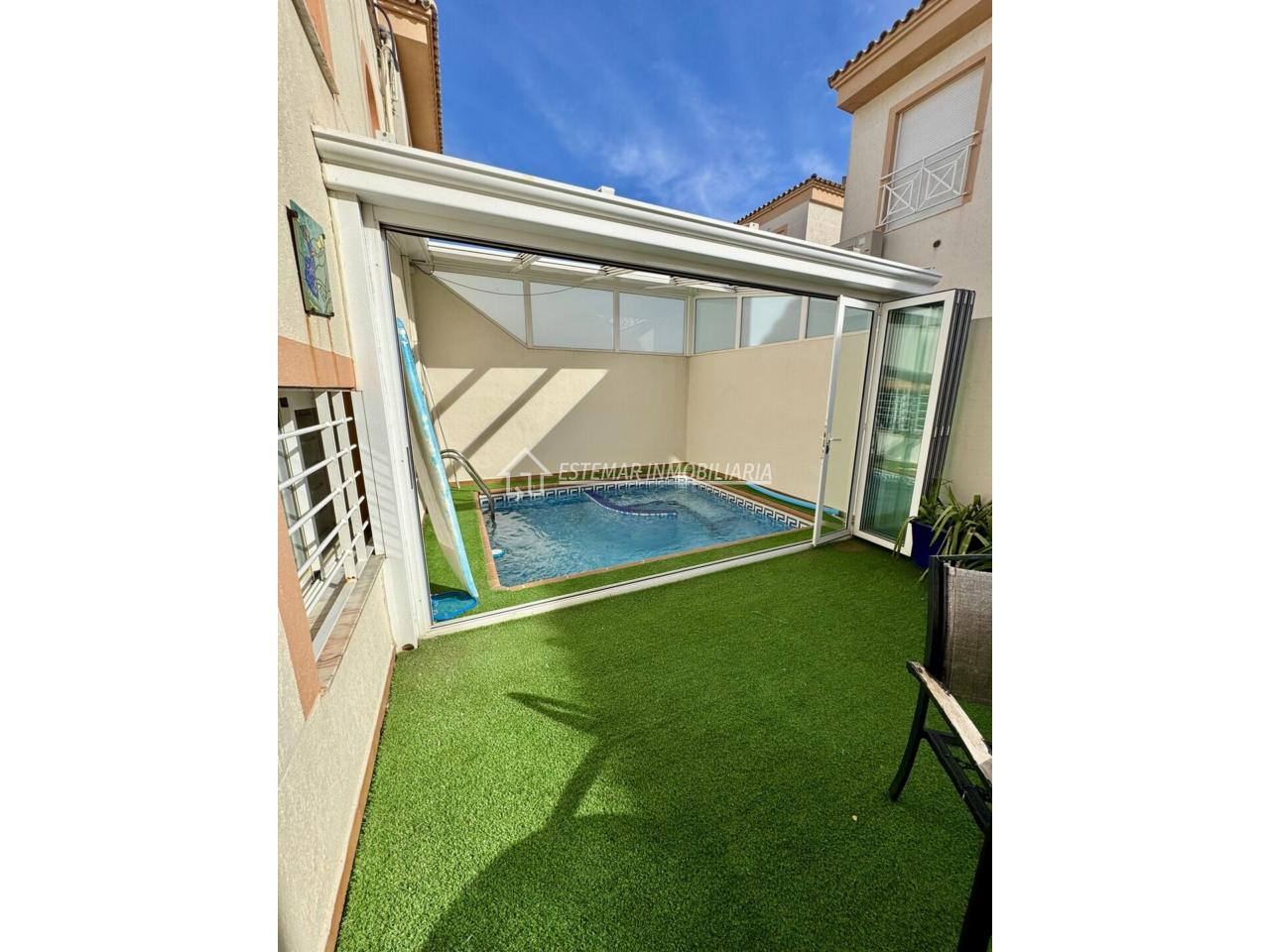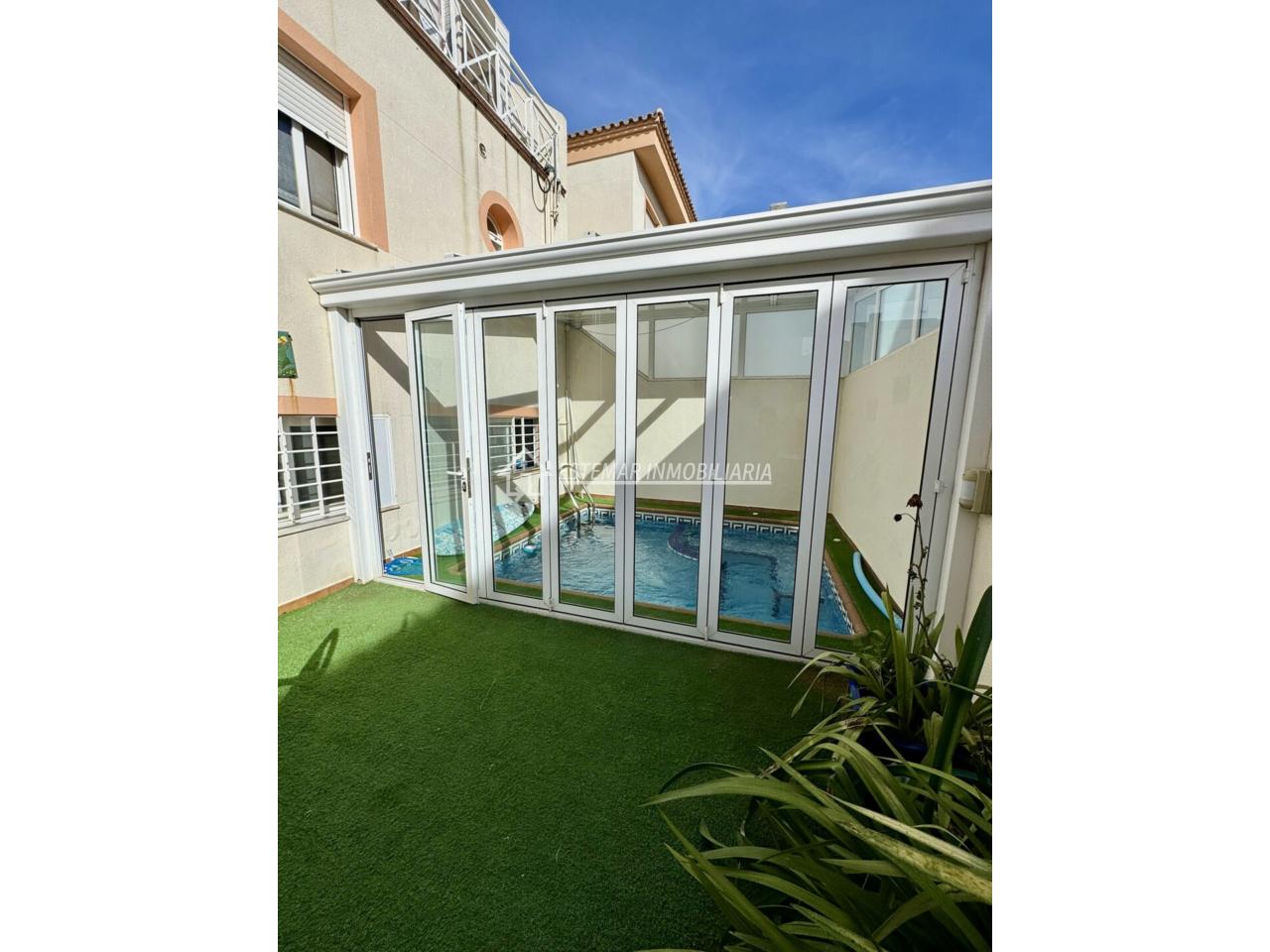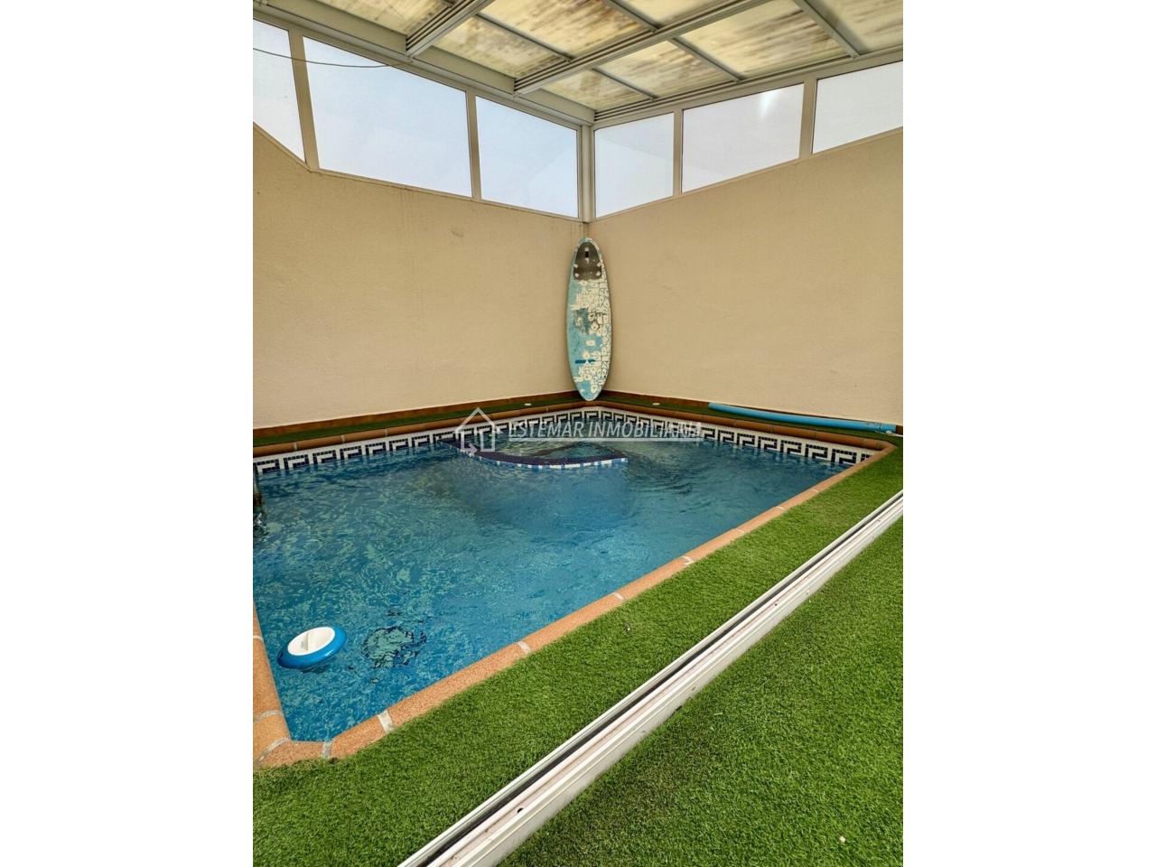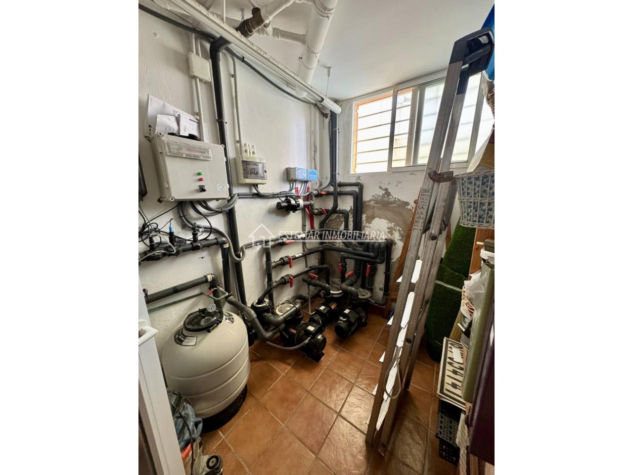 En la primera planta, al acceder se percibe la amplitud y luminosidad de un salón-comedor muy espacioso, acompañado de un aseo y una cocina de grandes dimensiones. Esta cocina conecta directamente con un comedor acristalado, perfecto para disfrutar durante los meses de verano, gracias a sus toldos laterales y superiores que permiten adaptar el espacio según la climatología. Desde esta planta también se accede a una terraza principal excepcional, equipada con paellero, piscina climatizada y jacuzzi parcialmente cubierto, ideal para disfrutar durante todo el año.